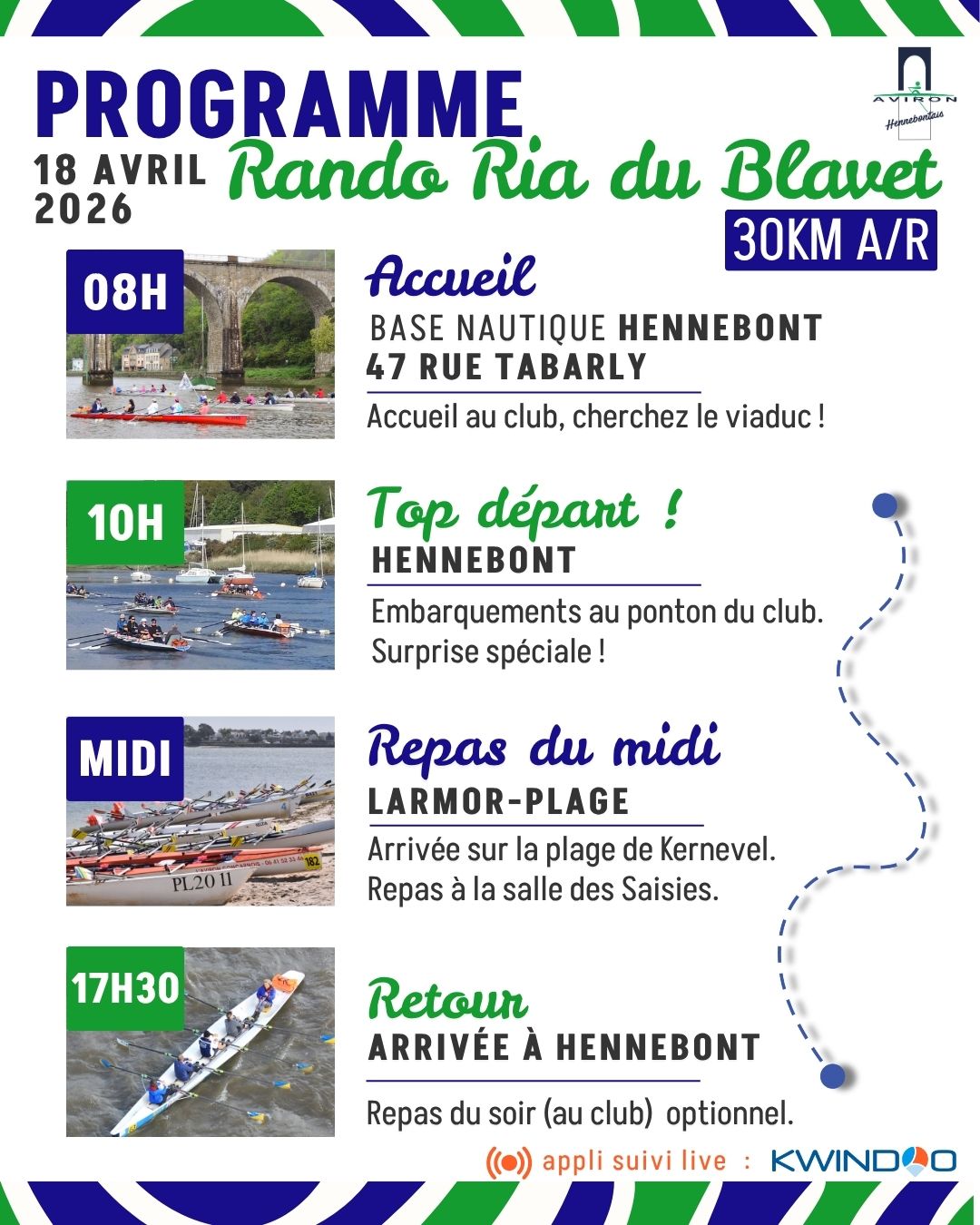 → La rando aura lieu les 11 et 12 juillet prochains, 70km sur 2 jours, sur un bateau de 10 rameurs + barreur, en pointe (bateau en bois, lourd, type de bateau appelé Church boat).